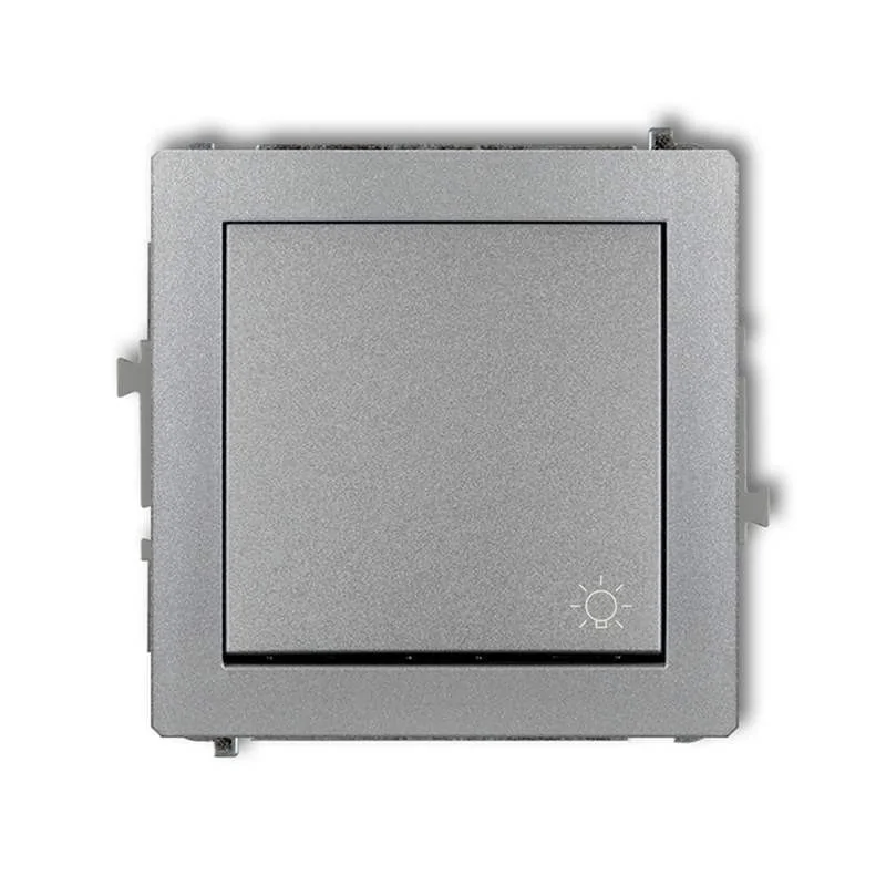 Włącznik światło w kolorze srebrnym serii DECO firmy KARLIK, przeznaczony do montażu podtynkowego. Włącznik wymaga dokupienia ramki serii DECO firmy KARLIK.