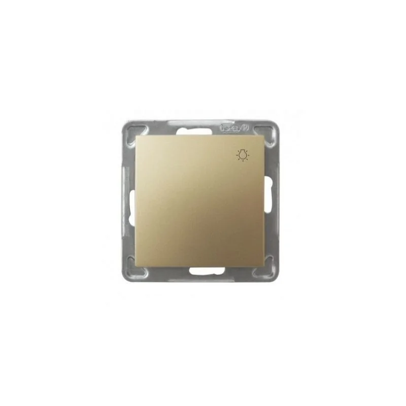Włącznik światło w kolorze złotym serii IMPRESJA firmy OSPEL, przeznaczony do montażu podtynkowego. Włącznik wymaga dokupienia ramki serii IMPRESJA firmy OSPEL.