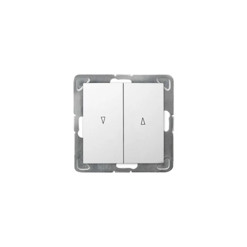 Włącznik żaluzjowy koloru białego serii IMPRESJA firmy OSPEL, przeznaczony do montażu podtynkowego. Włącznik wymaga dokupienia ramki serii IMPRESJA firmy OSPEL.