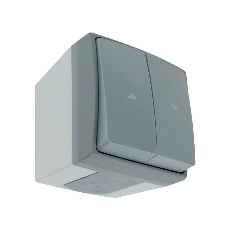 Łącznik roletowy AQUATIC PRO marki ORNO, charakteryzuje się solidną, szczelną konstrukcją, prostym, uniwersalnym designem i odpornością na pył i zalewanie - stopień odporności to IP55. Wewnątrz wyposażony jest w gumowe elementy uszczelniające, z zewnątrz złożony z solidnie spasowanych elementów wykonanych z jakościowego elastycznego tworzywa, odpornego na uderzenia i płowienie. Łącznik roletowy, to łącznik natynkowy przeznaczony do obsługi rolet lub żaluzji, stąd bywa też popularnie zwany żaluzjowym. To rodzaj łącznika, którego zadaniem jest uruchomienie silnika mechanizmu roletowego, co pozwala je opuszczać lub podnosić. Łącznik wyposażony jest w dwa przyciski (góra i dół) oraz zabezpieczenie uniemożliwiające uruchomienie ich jednocześnie. Aquatic Pro, to również estetyczny design wpasowujący się w wystrój użytkowych wnętrz czy industrialną przestrzeń. W serii znajdują się łączniki pojedyncze, świecznikowe, gniazda pojedyncze i podwójne, zestawy gniazd, przyciski dzwonka z podświetleniem i bez, oraz łączniki roletowe. Szeroki wybór elementów ułatwia skompletowanie jednolitego wyposażenia do pomieszczenia a nawet budynku. Seria utrzymana w kolorystyce szaro-grafitowej.
