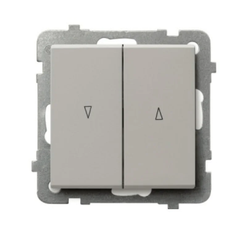 Przycisk zwierny żaluzjowy Sonata Ospel w kolorze Kaszmir to stylowy element osprzętu elektrycznego przystosowany do montażu podtynkowego w ramkach z tej samej serii. Subtelny, kaszmirowy odcień idealnie pasuje zarówno do nowoczesnych, jak i klasycznych wnętrz, dodając im ciepła i wyrafinowania. Przycisk wyposażony został w dwa klawisze z piktogramem strzałek.