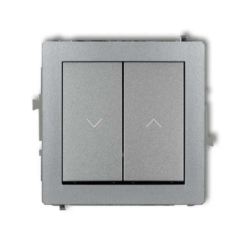 Włącznik żaluzjowy z podtrzymaniem serii DECO marki KARLIK przeznaczony jest do montażu podtynkowego. Został wyposażony w dwa klawisze z piktogramem strzałek. Wyłącznik żaluzjowy z podtrzymaniem posiada kołyskę powodującą naprzemienne przełączanie klawiszy, dzięki której następuje ruch żaluzji/rolety bez konieczności trzymania klawisza. Żaluzję/roletę można zatrzymać w dowolnym momencie. Produkt sprzedawany jest bez ramki standardowej w zestawie. Dostępne są ramki w krotnościach 1-5 w różnych kolorach. W ofercie znajdują się również ramki wypełniające- niweluje szczelinę pomiędzy ramką standardową, a ścianą (opcja dodatkowa) oraz pośrednie w bogatej kolorystyce, co pozwala na stworzenie własnej kompozycji.