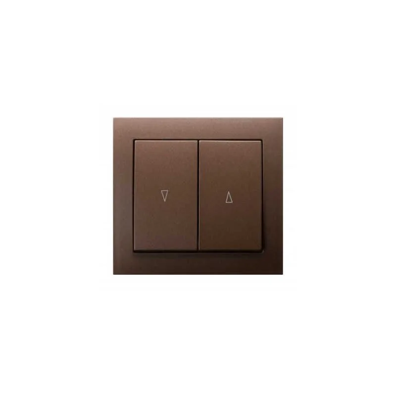 Łącznik żaluzjowy ŁP-7W/52 w kolorze brązowym wyposażony jest w dwa klawisze z piktogramami. Mechanizm łącznika przeznaczony jest do sterowania żaluzjami (roletami), do ich opuszczania lub podnoszenia, które odbywa się poprzez przytrzymanie odpowiedniego przycisku. Mechanizm przeznaczony jest do montażu podtynkowego. Wyłącznik wykonany z wysokiej jakości tworzywa, które nadaje mu matową i odporną na zarysowania powierzchnię. Włącznik żaluzjowy posiada ramkę w zestawie.