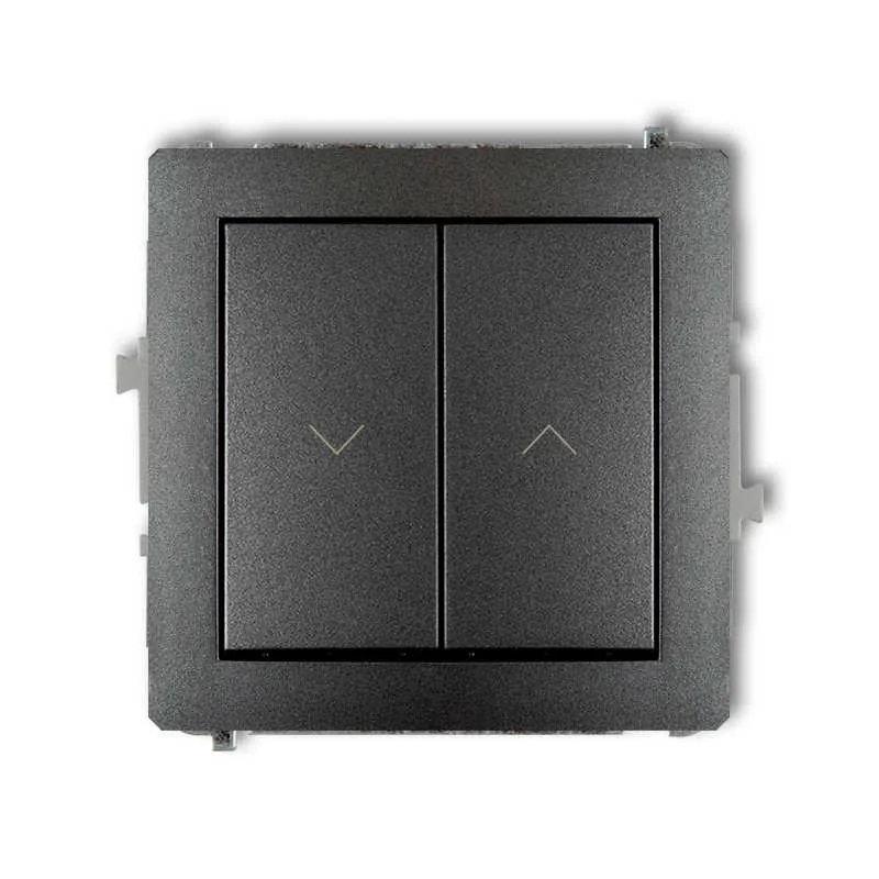 Włącznik żaluzjowy serii DECO firmy KARLIK, w kolorze grafitowym, przeznaczony do montażu podtynkowego. Włącznik wymaga dokupienia ramki serii DECO firmy KARLIK.