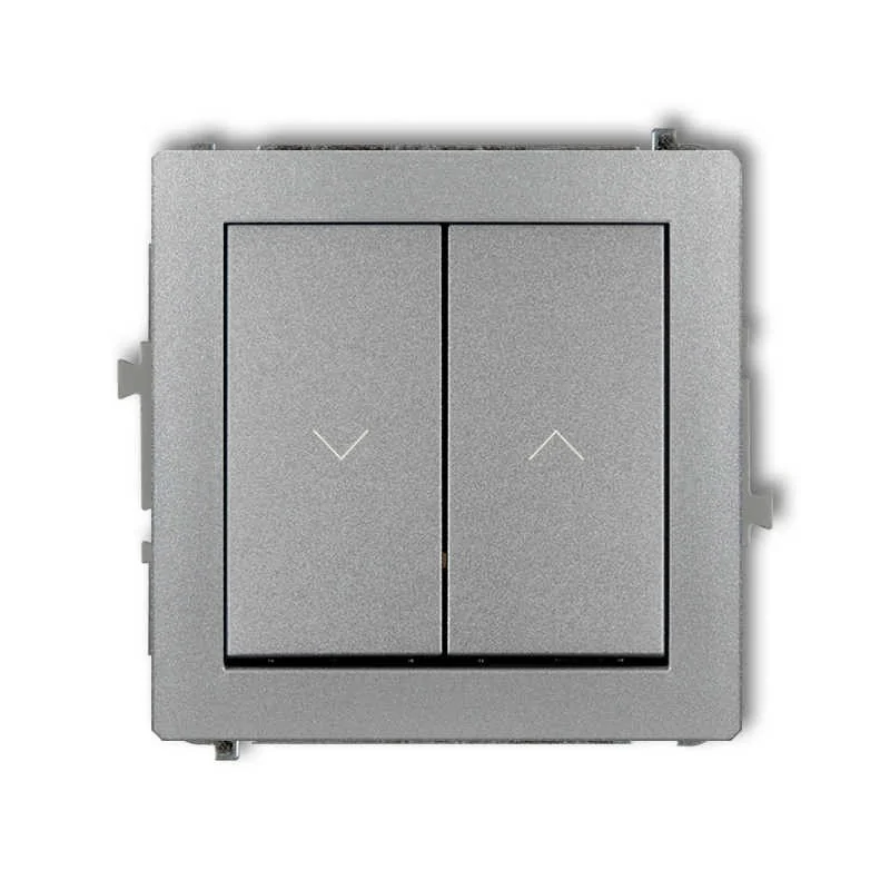 Włącznik żaluzjowy serii DECO firmy KARLIK, w kolorze srebrnym, przeznaczony do montażu podtynkowego. Włącznik wymaga dokupienia ramki serii DECO firmy KARLIK.