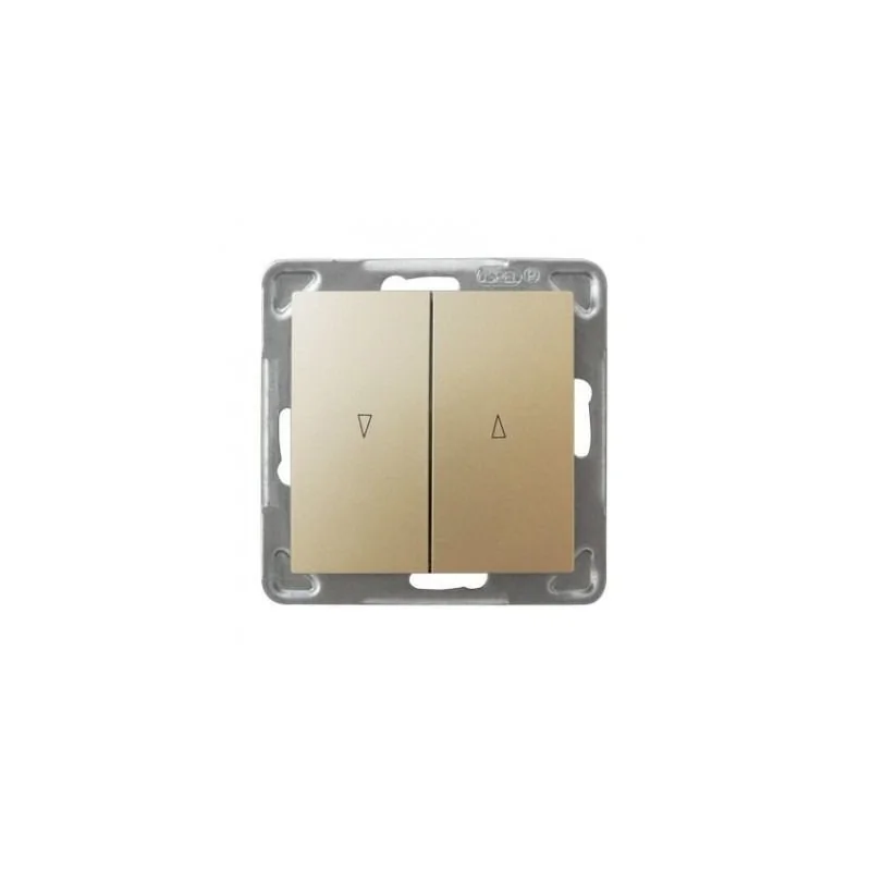 Włącznik żaluzjowy w kolorze złotym serii IMPRESJA firmy OSPEL, przeznaczony do montażu podtynkowego. Włącznik wymaga dokupienia ramki serii IMPRESJA firmy OSPEL.