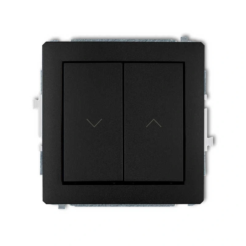 Włącznik żaluzjowy serii DECO firmy KARLIK w kolorze czarnym, przeznaczony do montażu podtynkowego. Włącznik wymaga dokupienia ramki serii DECO firmy KARLIK.