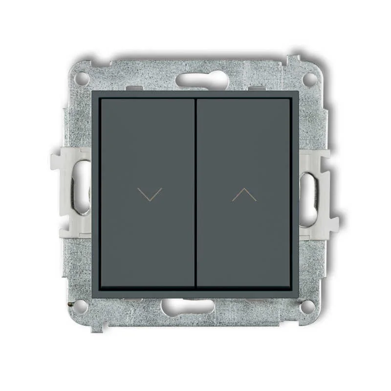 Żaluzjowy włącznik zwierny 28MWP-8 serii Deco Mini firmy Karlik sprzedawany jest bez ramki w zestawie i jest w kolorze grafitowym matowym. Ramki serii Mini to najmniejsze, dostępne na polskim rynku produkty tego typu. Włącznik żaluzjowy sprzedawany jest z ramką pośrednią w tym samym kolorze. Ramki pośrednie w innym kolorze niż kolor mechanizmu można kupić osobno. Do włącznika należy dokupić ramkę pojedynczą serii Deco Mini marki Karlik, która dostępna jest w różnych wersjach kolorystycznych. Włączniki serii DECO Mini występują również w wersji podświetlanej. Do łącznika żaluzjowego nie można dokupić modułu podświetlającego ani uszczelniacza. Moduły podświetlające można stosować ze wszystkimi łącznikami MINI oprócz łączników typu: MWP-7, MWP-8, MWP-8.1, MWP-88, MWP-88.1, MWP-33, MWP-33.1, MWP-10.2, MWP-10.21.