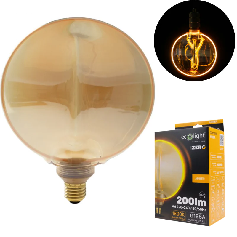 Duża żarówka ozdobna filamentowa bursztynowa vintage 4W z gwintem E27 ZERO ECO-LIGHT