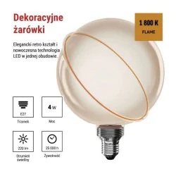 Żarówka LED to eleganckie i energooszczędne rozwiązanie, które łączy funkcjonalność z estetyką. Dzięki zastosowaniu bursztynowego szkła, emituje bardzo ciepłe i przytulne światło, które doskonale nadaje się do tworzenia nastrojowego oświetlenia w salonie, sypialni czy restauracjach. Jej dekoracyjny wygląd sprawia, że świetnie komponuje się z nowoczesnymi i klasycznymi wnętrzami.