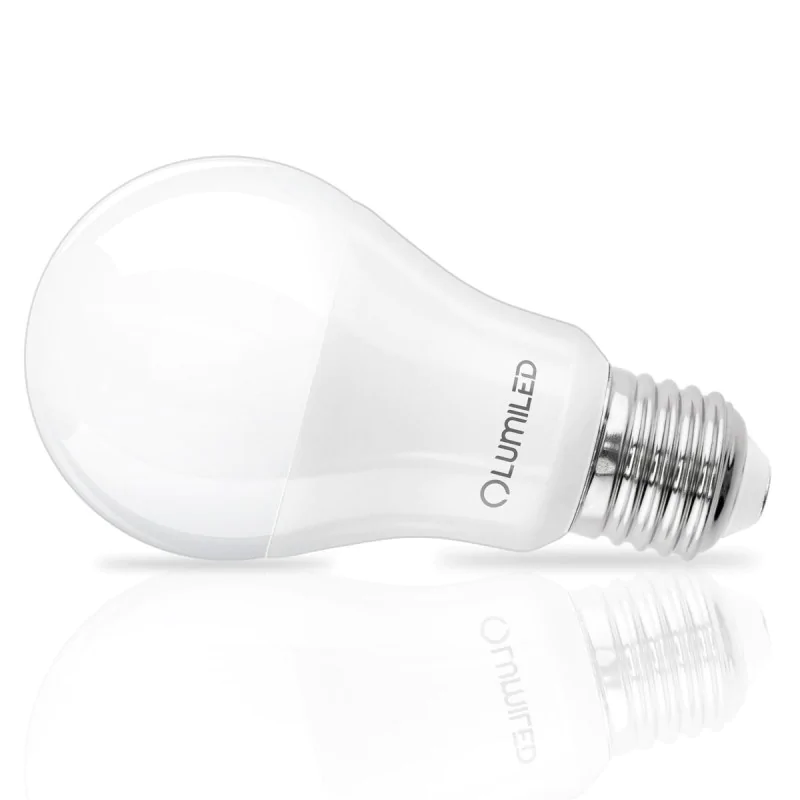Żarówka LED E27 10W marki LUMILED to energooszczędne źródło światła zachowujące do 90% energii w porównaniu z tradycyjnymi żarówkami. Prezentowane źródło światła działa do 15000 godzin emitując neutralne białe światło 4000K o mocy strumienia świetlnego 1055 lm. Szeroki 260-stopniowy kąt rozsyłu światłości zapewnia doskonałą widoczność w całym pomieszczeniu. Żarówka LED E27 10W należy do klasy energetycznej F (stara A+). Zastosowana przetwornica CCD w żarówce LED sprawia, że żarówka jest odporna na spadki i wzrosty napięcia w sieci. Światło nie migocze, ani nie drży. Przetwornica CCD sprawia, że żarówka jest bezawaryjna przez długi czas.