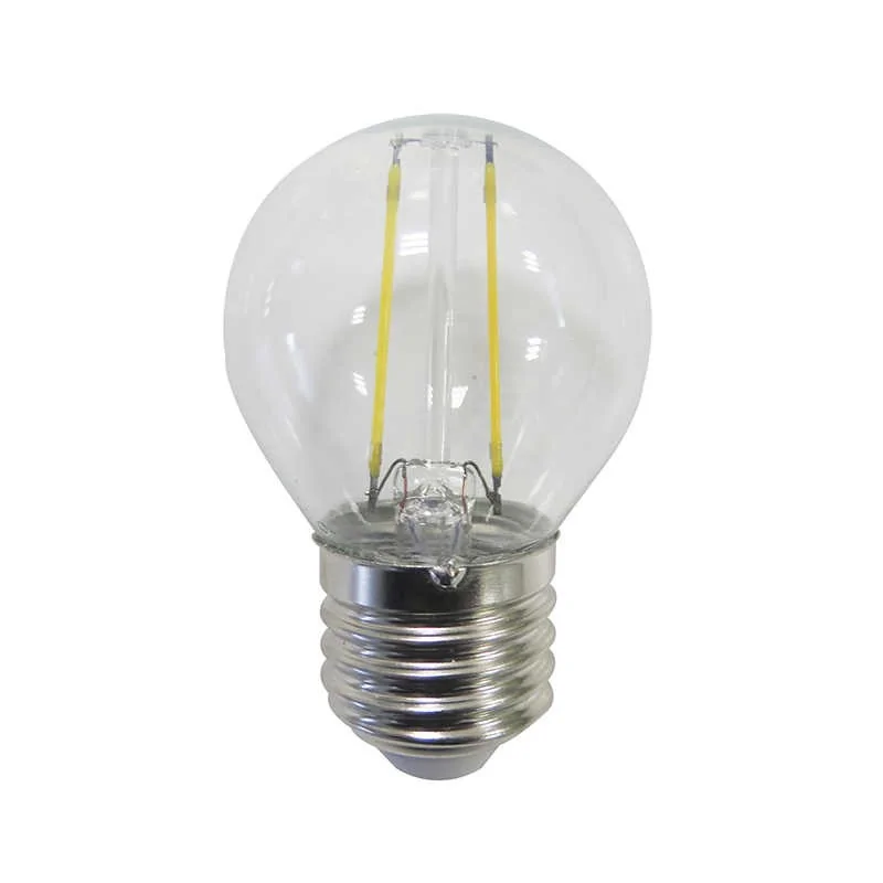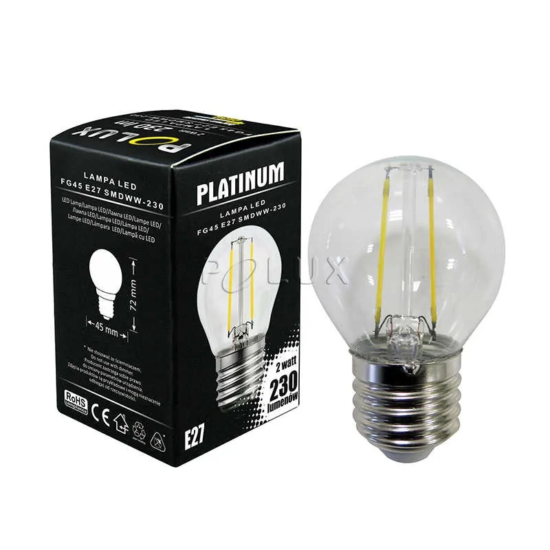 Żarówka led z filamentami marki Polux przystosowana jest do lamp z widocznym źródłem światła. Przezroczysty klosz i umieszczone w niej dekoracyjne filamenty dodadzą uroku każdej oprawie. Prezentowane źrodło światła posiada najpopularniejszy trzonek E27 i działa z mocą 2W, czego odpowiednikiem jest 23W tradycyjnego rozwiązania. Produkt świeci ciepłym białym światłem o temperaturze barwowej 3000K i strumieniu świetlnym równym 230 lumenów. Przybliżony czas działania żarówki led E27 to około 25000h oraz 12500 cykli on/off.