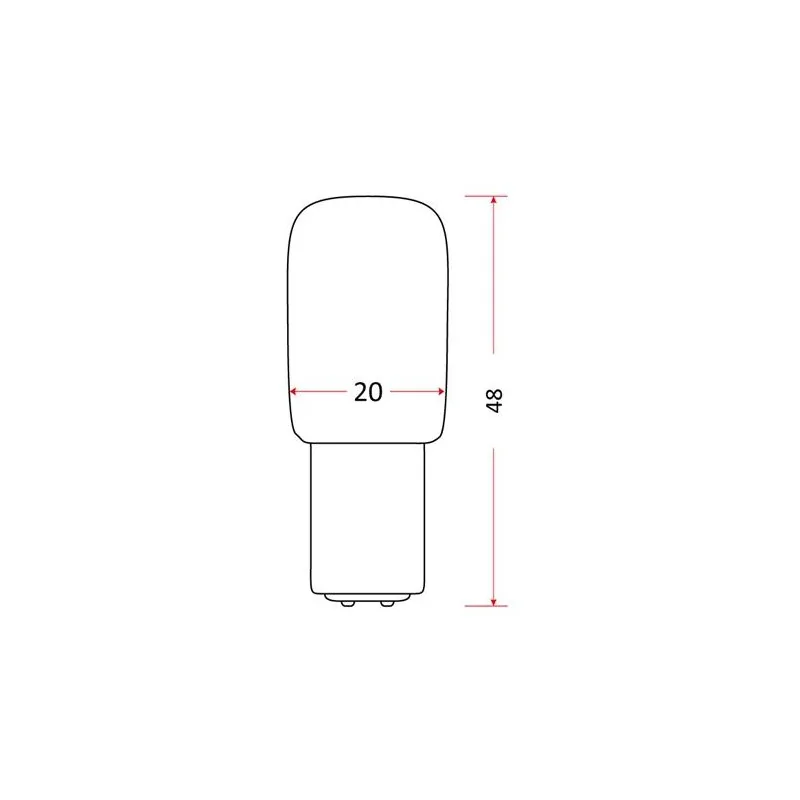 Żarówka tradycyjna do maszy do szycia RUMLUX o mocy 15W. Żarówka firmy RUMLUX świeci ciepłą barwą światła na poziomie 2700K. Żarówka ma szerokie zastosowanie jako oświetlenie lodówek, okapów kuchennych, lampek nocnych czy maszyn do szycia. Wymiary żarówki to: średnica- 20mm, wysokość- 48mm. Żarówka działa z mocą 15W, a jej strumień świetlny jest równy 90 lumenów .Lampa nie nadaje się do oświetlania pomieszczeń domowych. Kąt rozsyłu światła to 180 stopni.