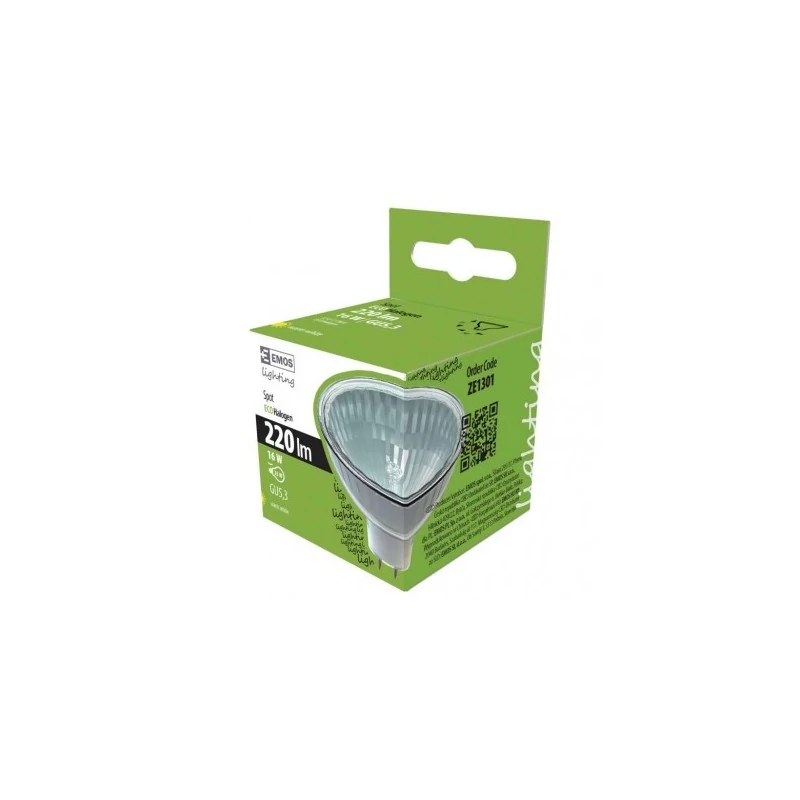 Żarówka halogenowa w kształcie reflektora o trzonku Gu5,3 to żarówka ECo o mocy 16W, a jej odpowiednikiem jest tradycyjna żarówka o mocy 25. Niskonapięciowa żarówka 12V emituje ciepłą białą barwą światła, którego temperatura barwowa jest równa 2700K. Strumień świetlny żarówki wynosi 220 lumenów, a jej wymiary to: 50 x 44 mm. Żarówka wyposażona jest w trzonek GU5,3, MR16 i działa z napięciem 12V. Przybliżony czas działania reflektorowej żarówki to około 20 000h oraz 100 000 cykli on/off. Kąt rozsyłu światła jest równy 36 stopni.
