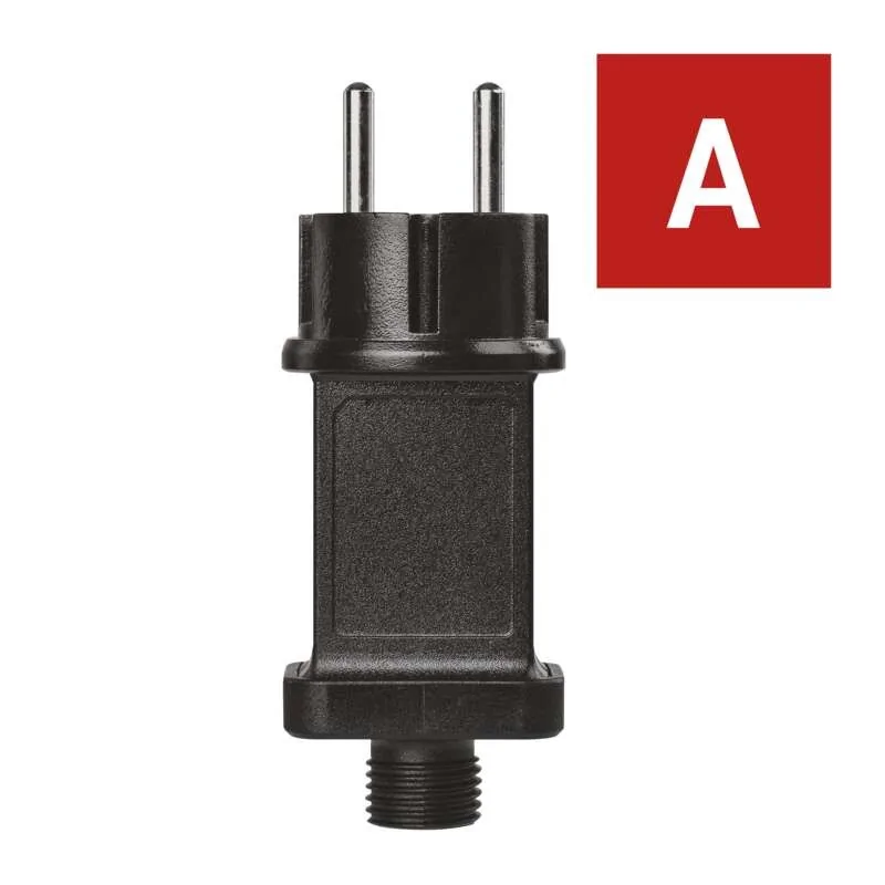 Oświetlenie łączone- zasilacz do lampek choinkowych led w kolorze czarnym. Dedykowany jest do serii Standard oraz Profi. Zasilacz może pracować z maksymalną ilością 800 ledów. Ze względu na stopień odporności IP44 produkt może być stosowany wewnątrz jak i na zewnątrz.