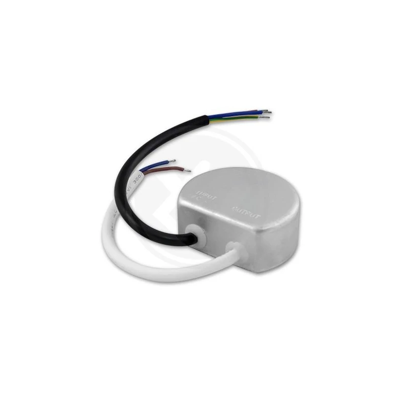 Zasilacz hermetyczny dopuszkowy to całkowicie wodoszczelne i pyłoszczelne urządzenie IP67 służące do zmiany napięcia znamionowego pod wymagania oświetlenia w technologii LED. Moc nominalna LED-owego zasilacza wynosi 25W. Zasilacz obsługuje uniwersalny zakres napięcia wejściowego AC 250V, gdzie napięcie wyjściowe wynosi 12V. Zasilacz hermetyczny okrągły posiada zabezpieczenia, które w przypadku zwarcia odcinają napięcie wyjściowe i uruchamiają je z powrotem natychmiast po jego ustąpieniu. Świetny do opraw schodowych czy listw meblowych. Model dostęny w różnych mocach.